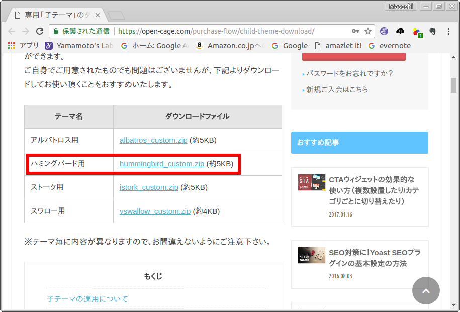- 子テーマのダウンロードサイト「子テーマのダウンロード・導入」を開きます.