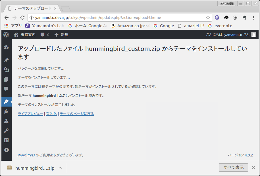 Hummingbird (親テーマ) とその子テーマのインストール方法を示します.