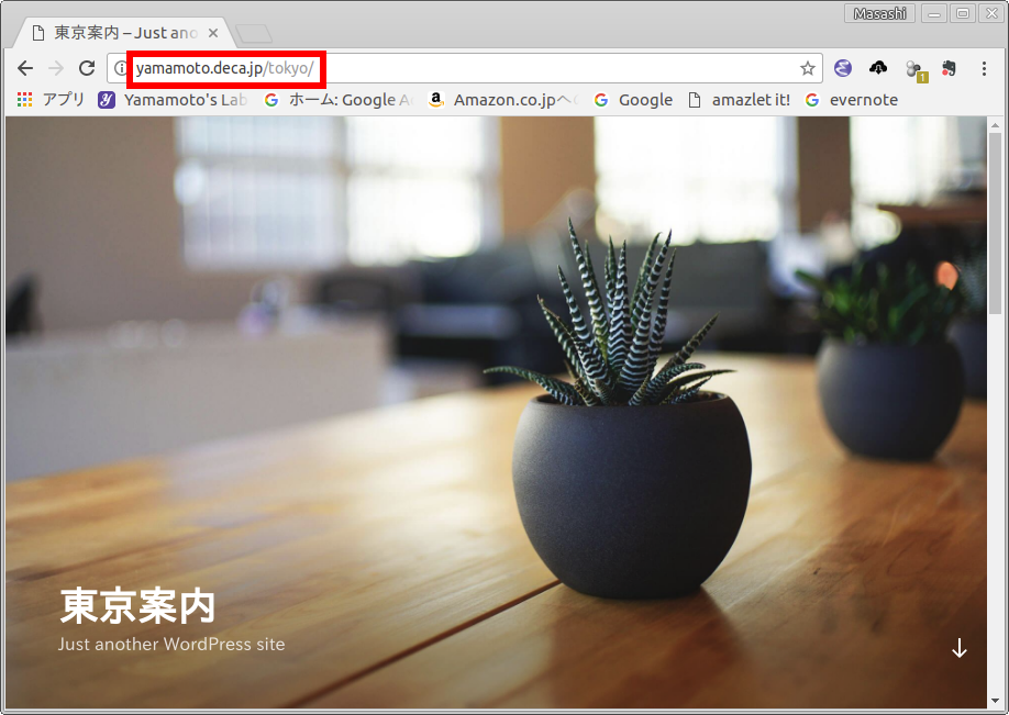 - サーバーに WordPress をインストールした時のサイト URL (参考) を,ブラウザに入力します.[参照: 図10]