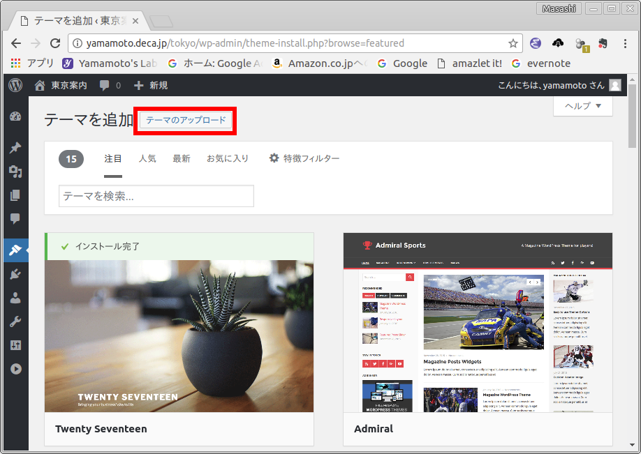 - テーマの追加の画面が現れますので,テーマのアップロード をクリックします.[参照: 図23]