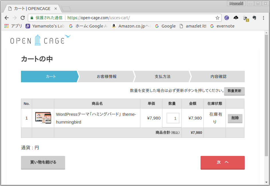 - カートの中が表示されます.数量を確認し,次へ をクリックします(図3).