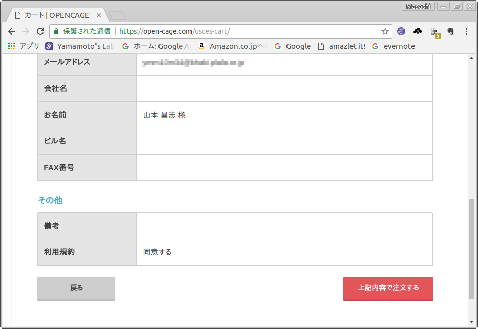 - 内容確認のページが現れます.内容を確認し,上記内容で注文する をクリックします(図7).