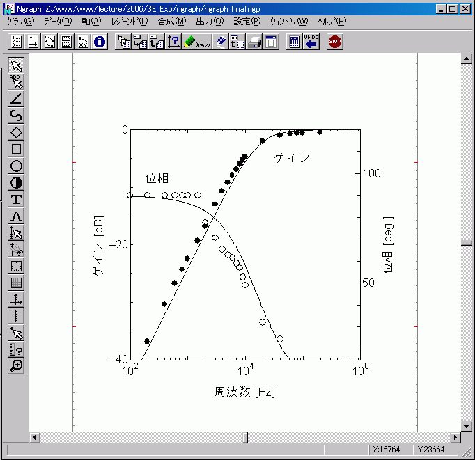 情報処理センターと電気情報工学科3FのPCルームのパソコンには,Ngraphがインストールされている.これを使うと,手書きよりも,短時間できれいなグラフを作ることができる.レポートで提出するグラフはパソコンで作成することを強く進める.