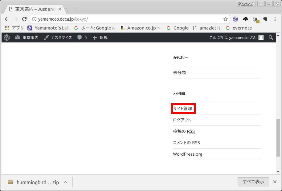 Hummingbird (親テーマ) は,WordPress のテーマです.Hummingbird をインストールするためには,予め Word Press をインストールしておく必要があります.