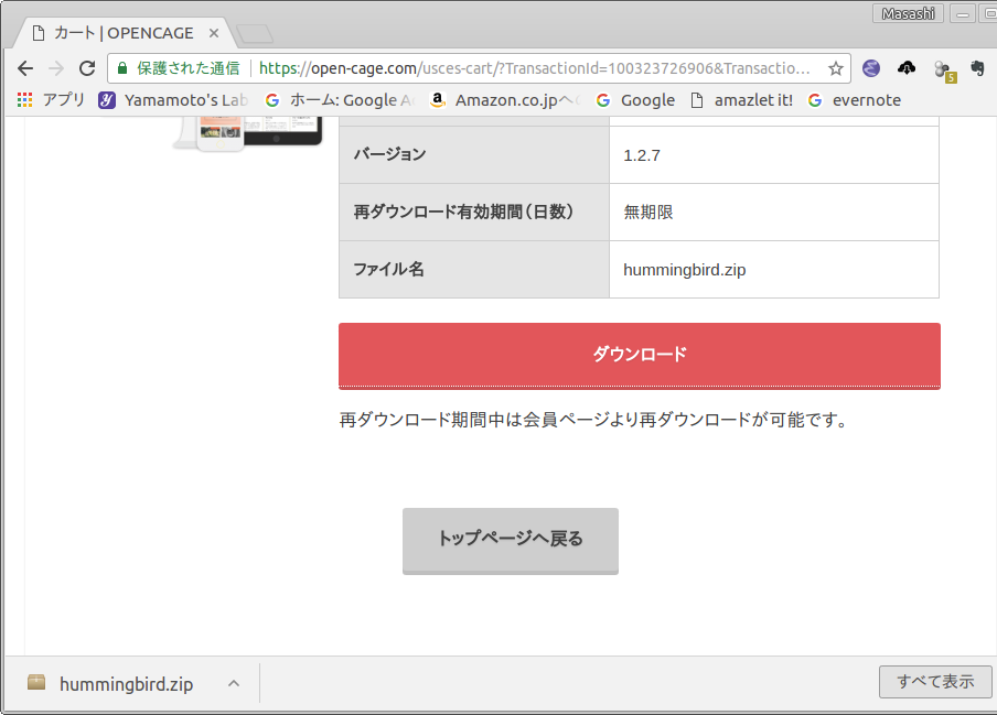 Hummingbird は有料です.それを購入し,ダウンロードする手順は以下のとおりです.